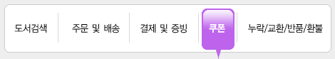도서 주문 과정에서 결제수단을 선택하실 때 적용할 수 있는 쿠폰을 확인 하실 수 있으며